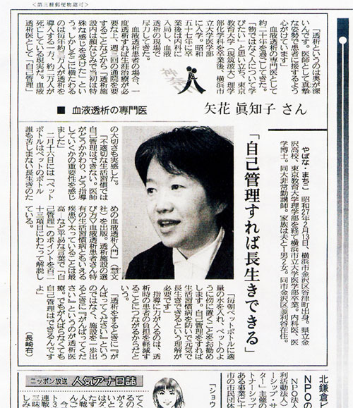 矢花院長が産経新聞の取材を受けました。血液透析専門医として独自の持論が紹介されています。